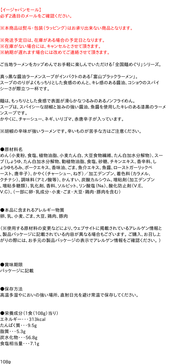 寿がきや 富山ブラックラーメン108g【イージャパンモール】